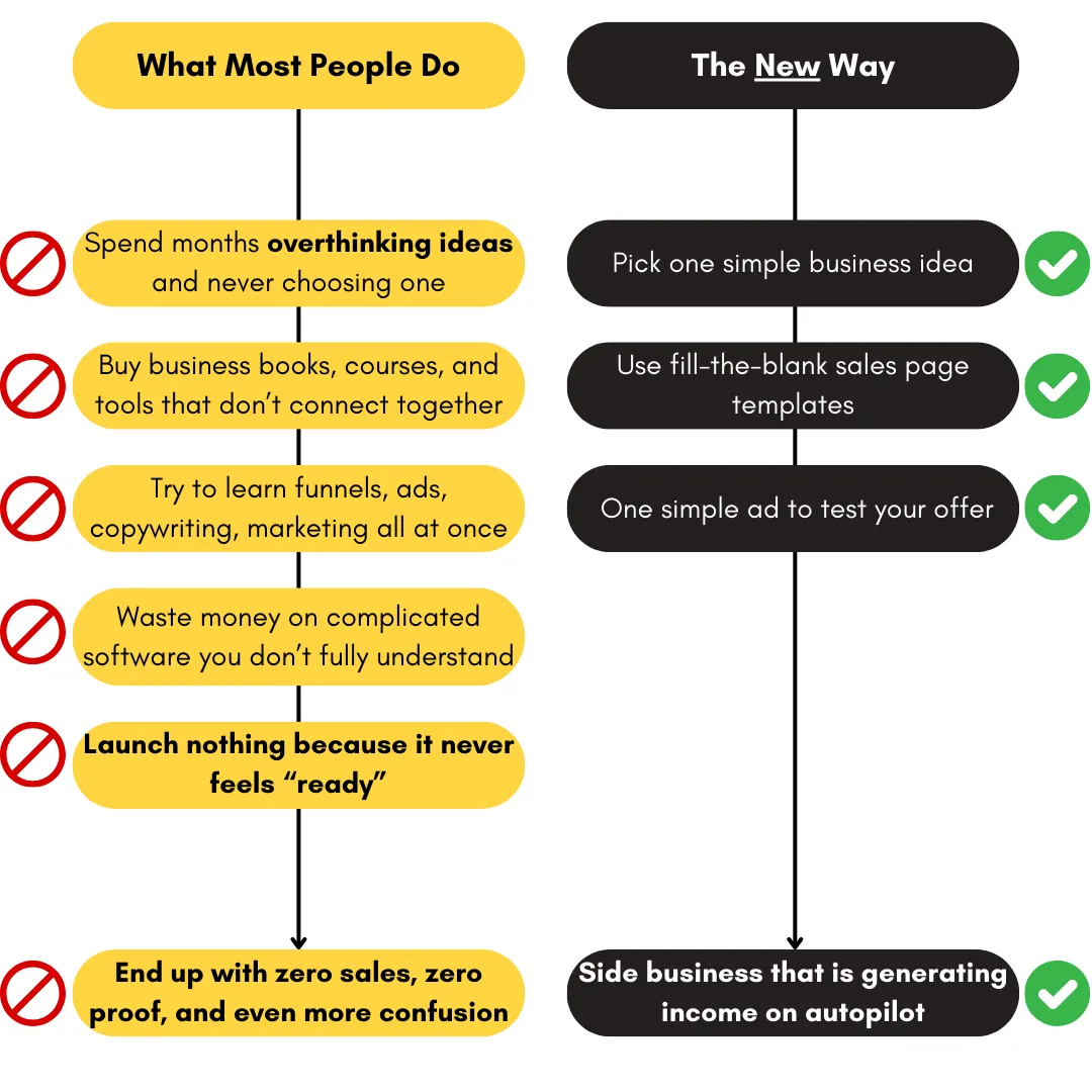 The moment I decided to start, I was hit with funnels, copywriting frameworks, ads, email sequences, marketing jargon, and “experts” telling me I needed all of it before I could make a single dollar.